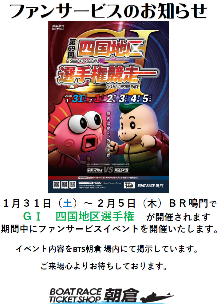 鳴門 GⅠ 四国地区選手権 イベント❗