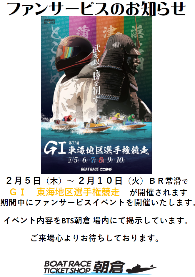 2/5(木)~2/10(火) GⅠ 東海地区選手権がボートレース常滑にて開催されます。