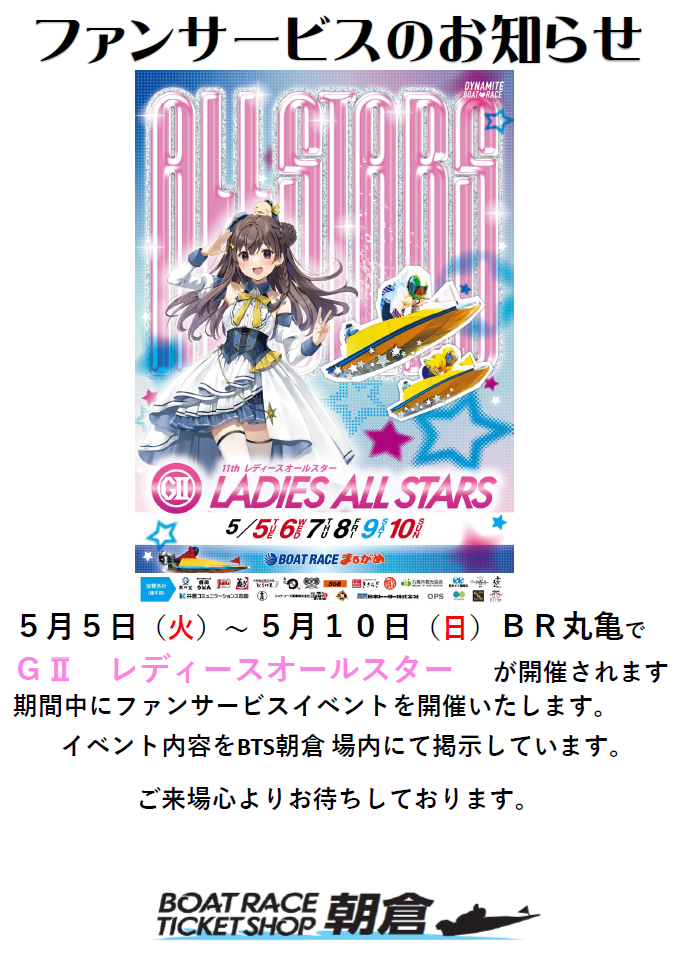 丸亀 GⅡ レディースオールスター イベント❗